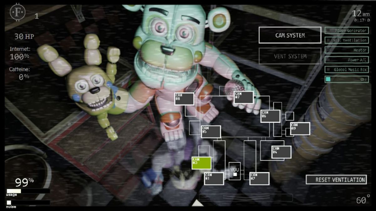 The ventilation system plays a significant role in the game. Different animatronics can crawl through the vents, posing a direct threat to you. Keep a close eye on the ventilation system and react quickly if you spot an animatronic making its way through.